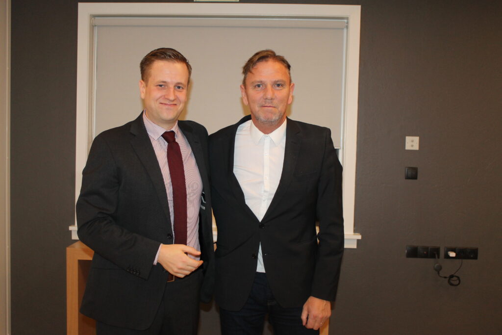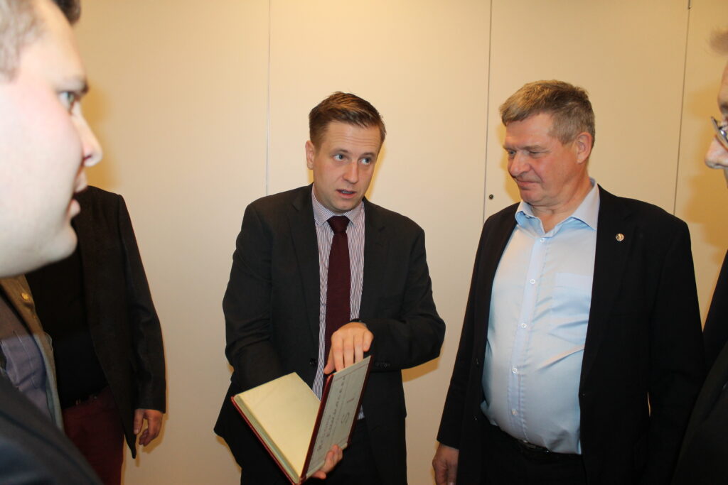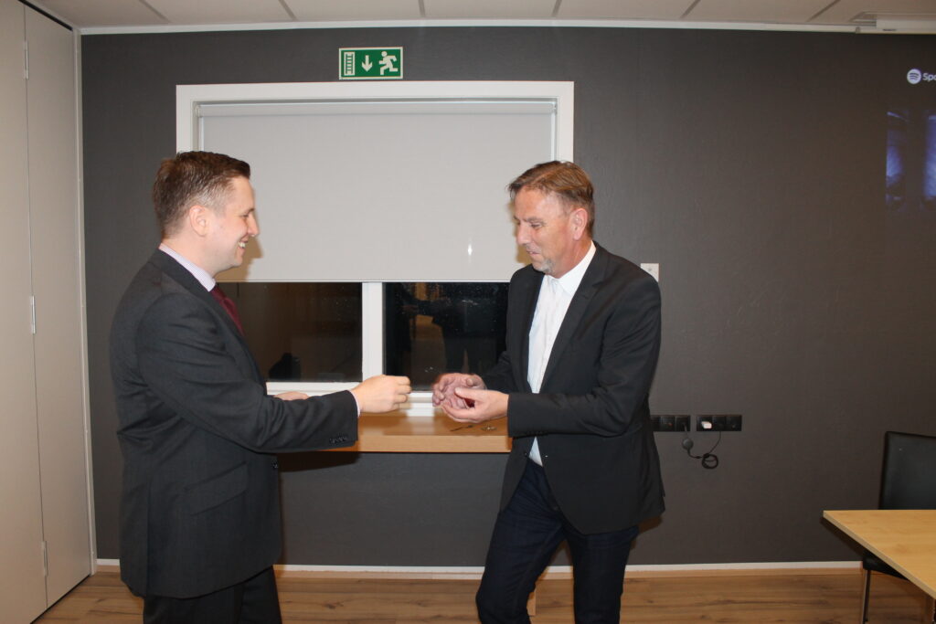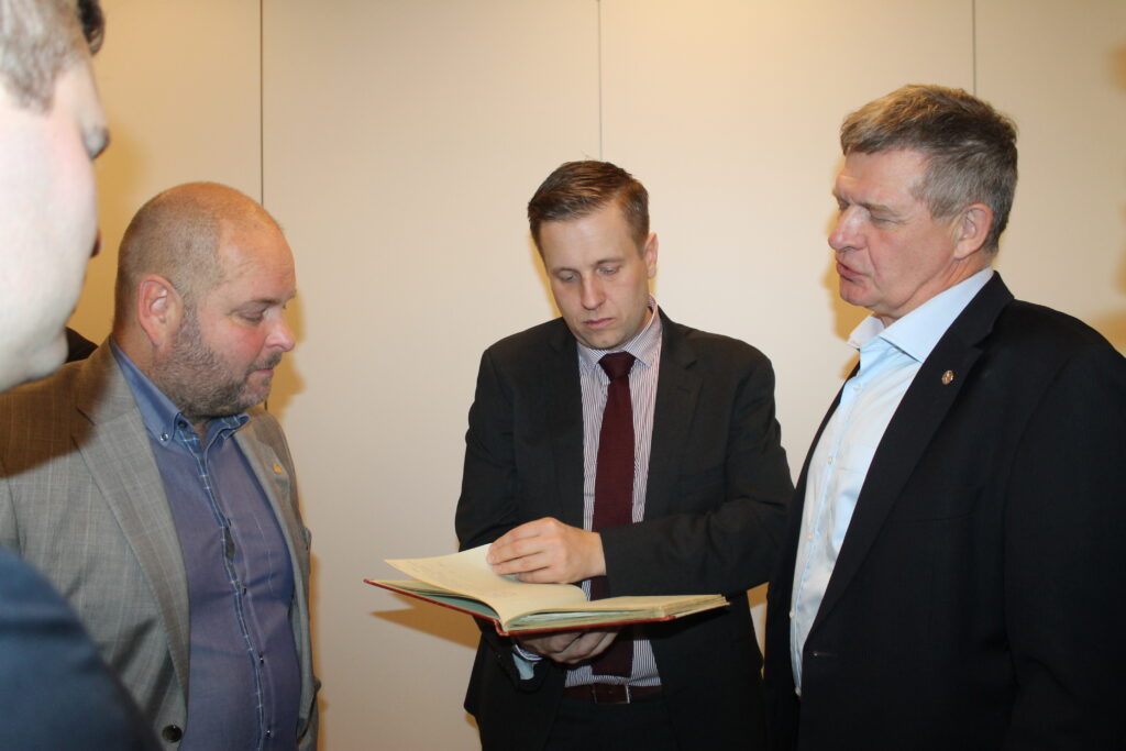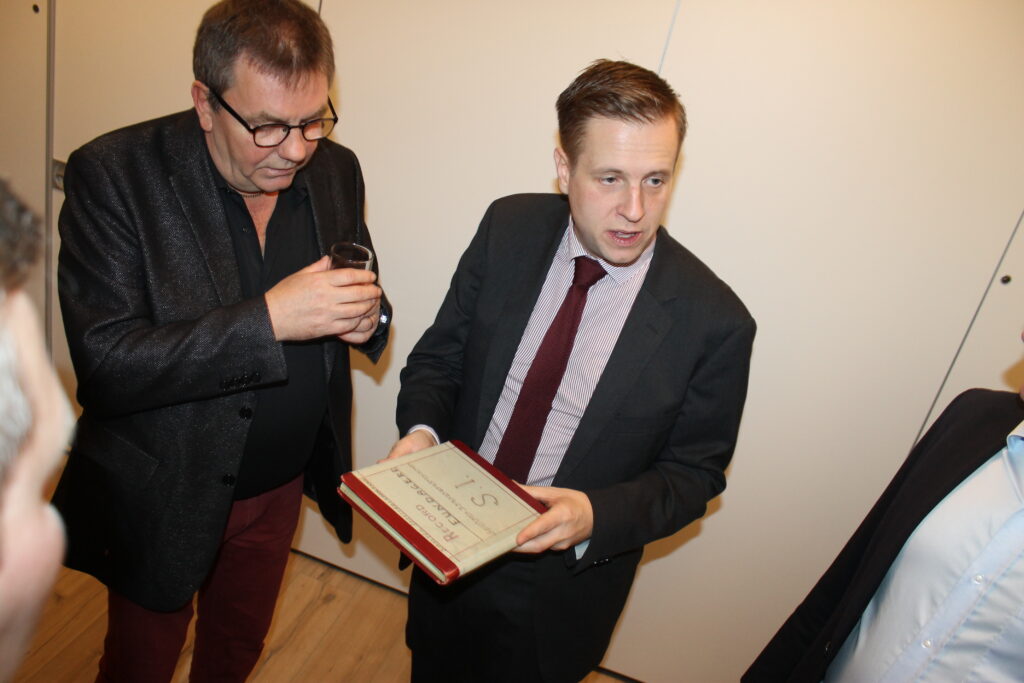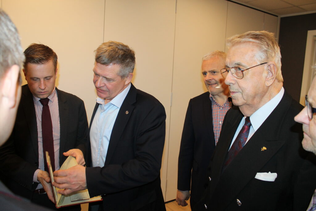 Atli Steinarsson einn stofnenda SÍ og fyrsti formaðurinn afhenti stjórninni fyrstu fundargerðabók Samtaka íþróttafréttamanna sem inniheldur meðal annars fundargerðir frá stofnfundinum árið 1956.